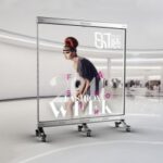 | 用途や場所に合わせて最適なサイズで設置可能。薄くて軽量のため、透明ガラスやアクリル板の表面に直接貼り付けることができます。 | |