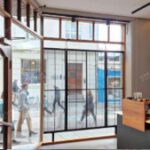 店舗はもちろん、ショッピングモールや公共施設など広いガラス面にも設置可能。ガラス面の内側設置のため屋外広告規制を受けず、ランドマーク的な演出にも最適です。